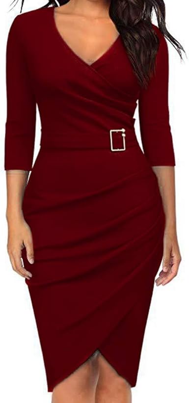 Vestidos De Fiesta Mujevestido Ajustado Sexy De Manga Larga Para Mujer Vestido Lapiz Mujer Cuello En V Vestido De Trabajo De Oficina Dobladillo Coctel Falda Amazon Es Ropa Y Accesorios