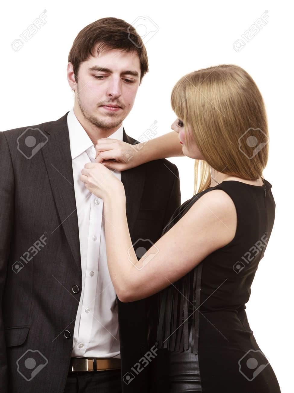 Woman Helping Man Dress Up Elegant Clothes Stock Image Image Of Celebration Celebrate 80183953
