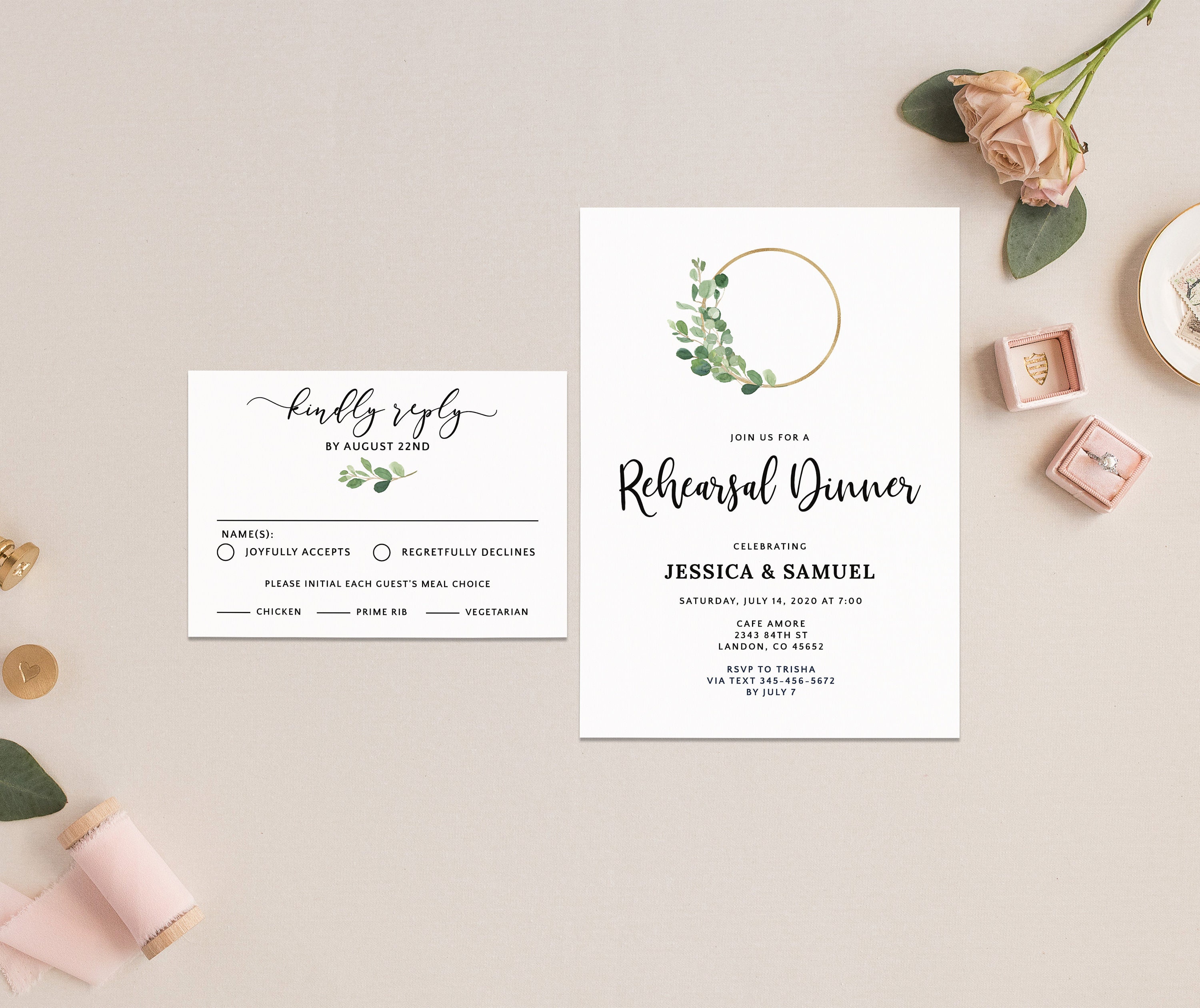 Rehearsal Dinner Invitations Eucalyptus Wedding Calligraphy Script Invites