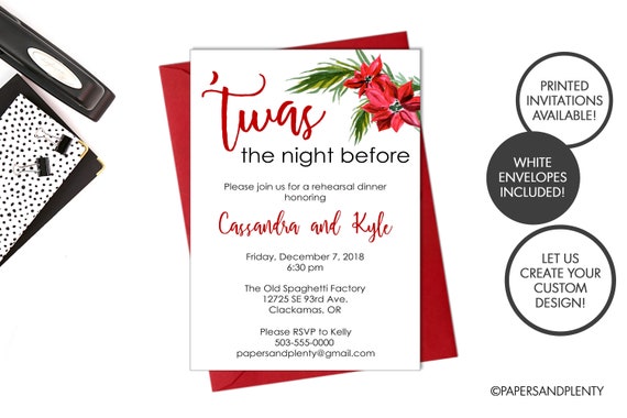 Printed Winter Wedding Rehearsal Dinner Invitation Twas Etsy