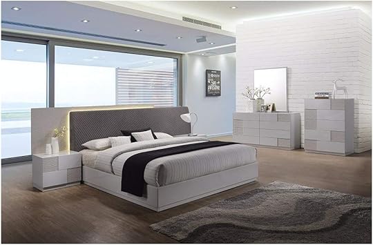 J M Furniture Napa Modern King Bedroom Set In Light Grey Walnut 5 Piece Home Kitchen Furniture