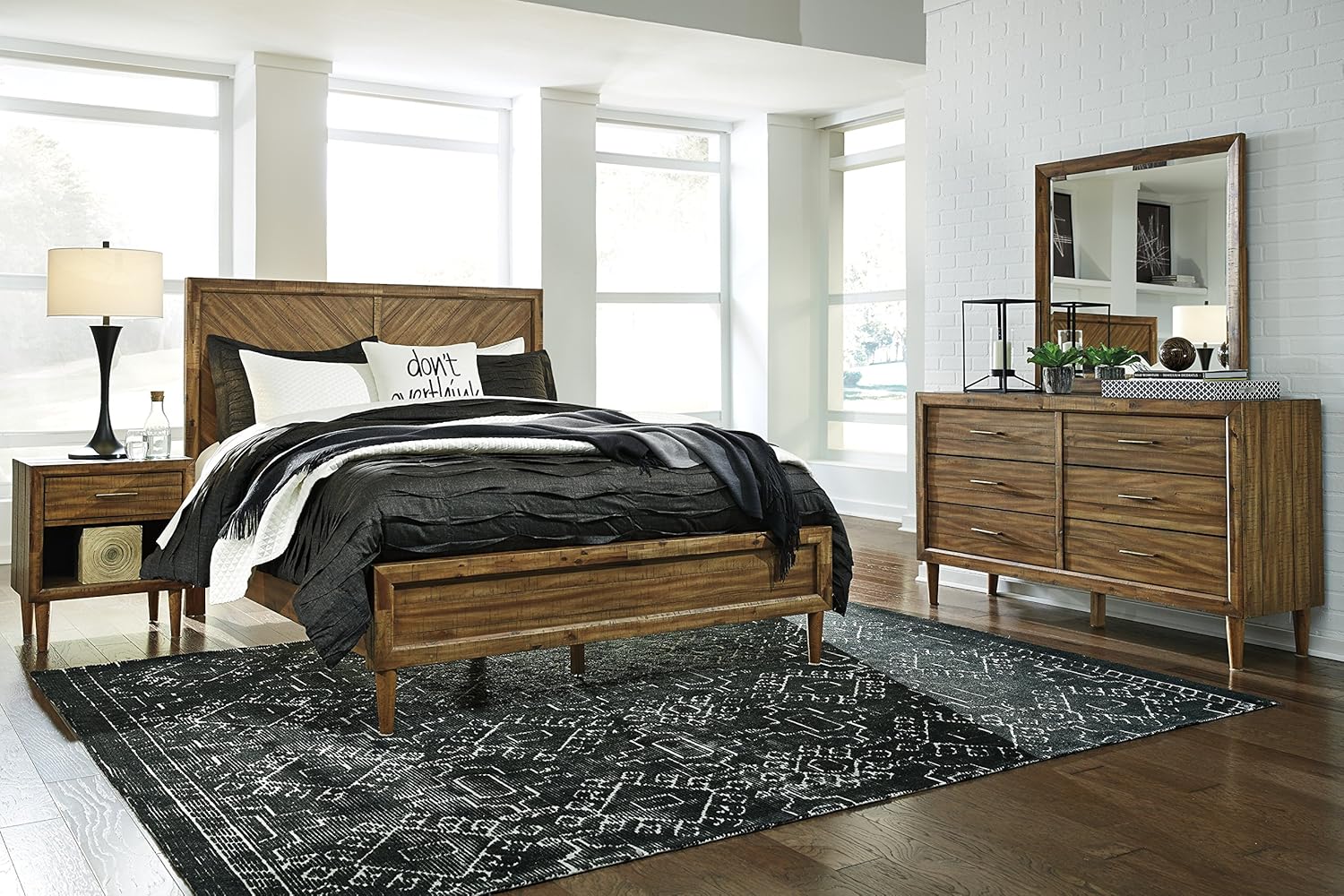 Broshane Contemporary Light Brown Color Wood Bedroom Set Queen Panel Bed Dresser Mirror 2 Night Stands Amazon Ca Home Kitchen
