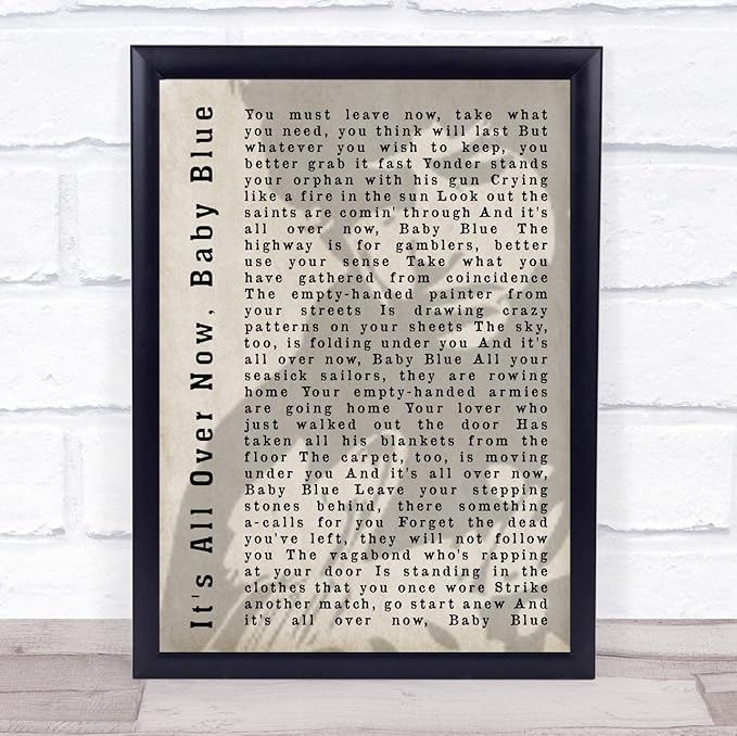 Fingerprint Designs It S All Over Now Baby Blue Shadow Song Lyric Quote Print Amazon Co Uk Kitchen Home