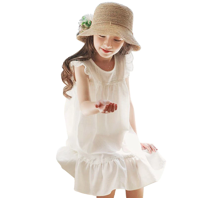 6 14 Yrs Big Girls Summer Cotton Sleeveless White Dress Elegant Birthday Party Kids Clothes Teenage Loose Chiffon Ruffle Dress Akolzol Com