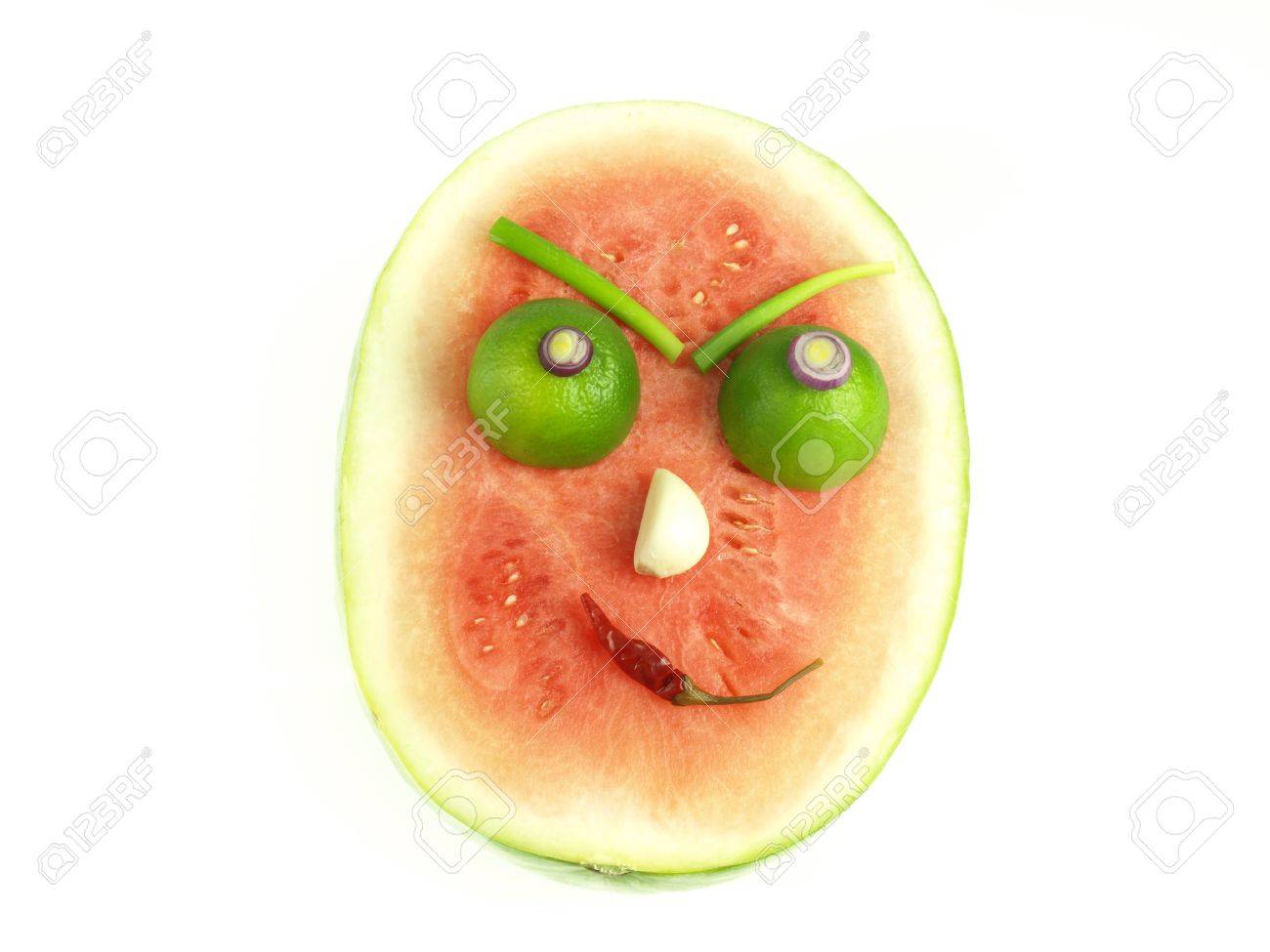 Close-up Der Drohenden Gesicht Aus Obst Und Gemüse Lizenzfreie Fotos, Bilder Und Stock Fotografie. Image 12655159.